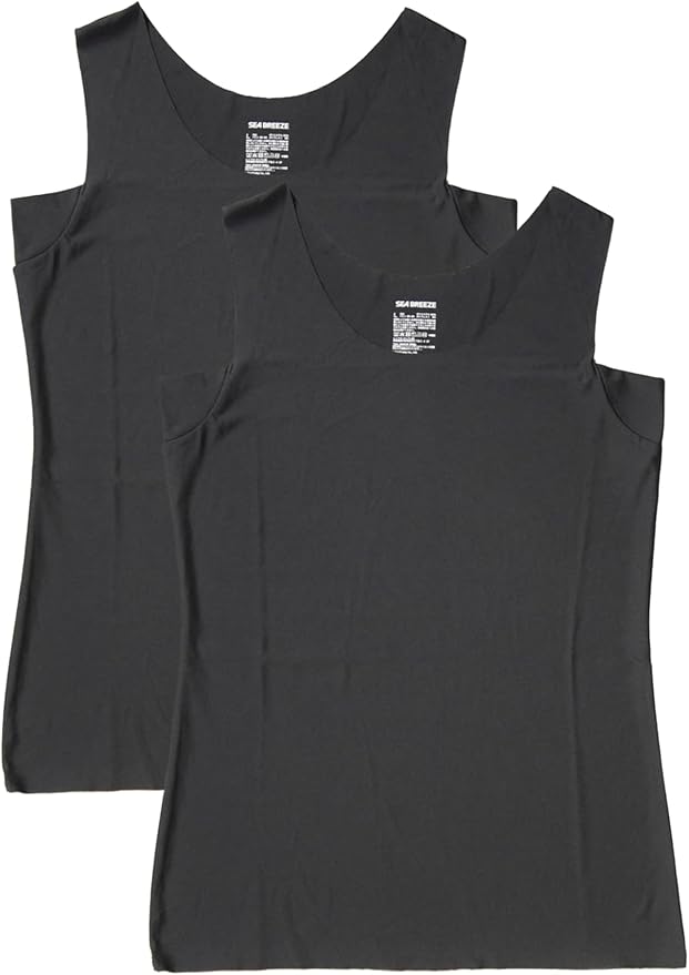 [Seabreeze] タンクトップ インナー 下着 脇汗パッド付 接触冷感 2枚セット レディース ブラック LL