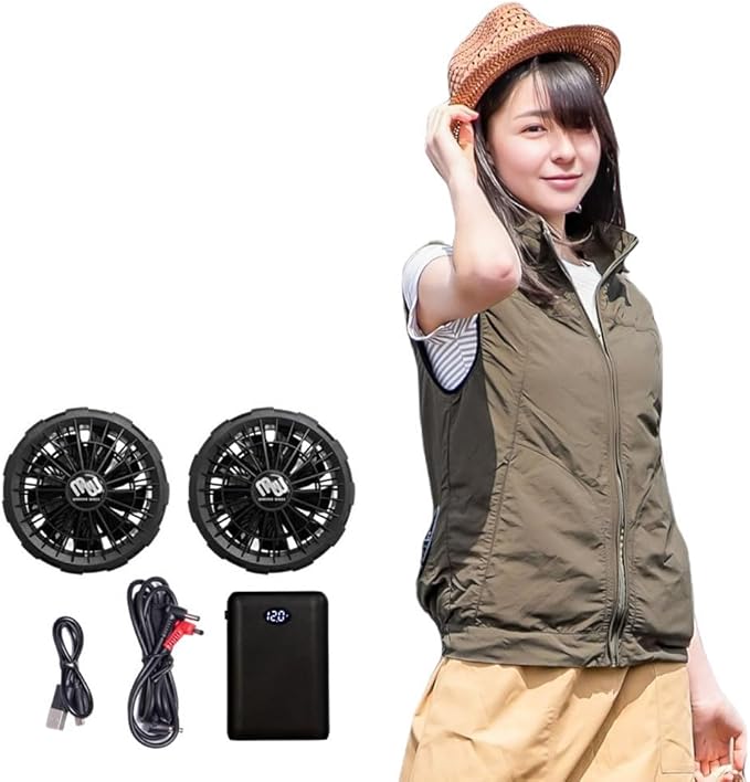 【機能】日焼け防止コーティング、速乾、熱中症対策、USB給電3段階調整、最大10時間稼働、高性能チップ内蔵バッテリー(10000mAh)、PSE認証済