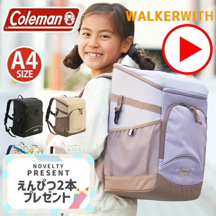 低学年から高学年まで長く使いやすいコールマンのスクエアキッズリュック「WALKER WITH」です。約600gの軽量設計ながら約16Lの容量で、A4フラットファイルも収納可能です。タブレット対応のクッションポケットや仕分けしやすいフロントポケットを備え、整理整頓がしやすいのもうれしいポイント。給食袋などが引っかけられるフックやDカンなどもしっかり付いているので、通学用のランドセルリュックとしても普段使いのバックパックとしても活躍してくれます。