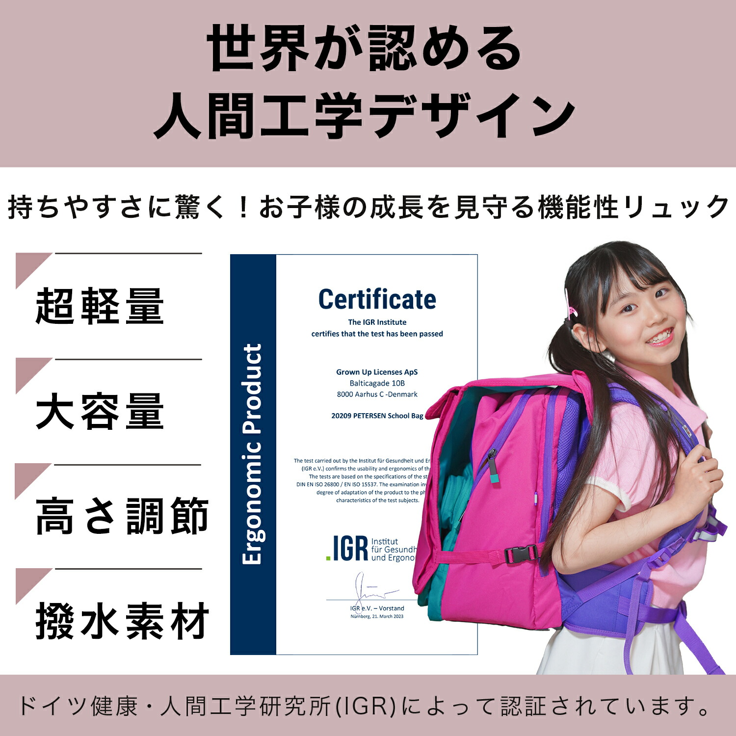 その他: 肩サスペンダー(高弾力EVA素材を使用したU字型サスペンダー) 、時刻表入れあり、補助カバン・筆箱付き、抗菌加工(表地)、補助カバン( 取り外し可能な裏地で洗濯が可能、脱着クロスひも付き)