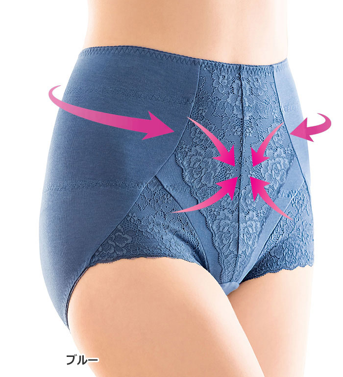 【機能】吸汗速乾加工、タグレス(洗濯表示直接プリント)、レース骨盤ベルト付き、パワーネットで腰まわりを引き締める