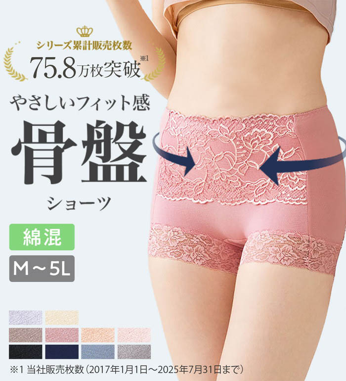 【機能】ラクな履き心地、骨盤周りのスッキリをサポート、伸縮性に優れたストレッチ素材採用、サイズ展開豊富